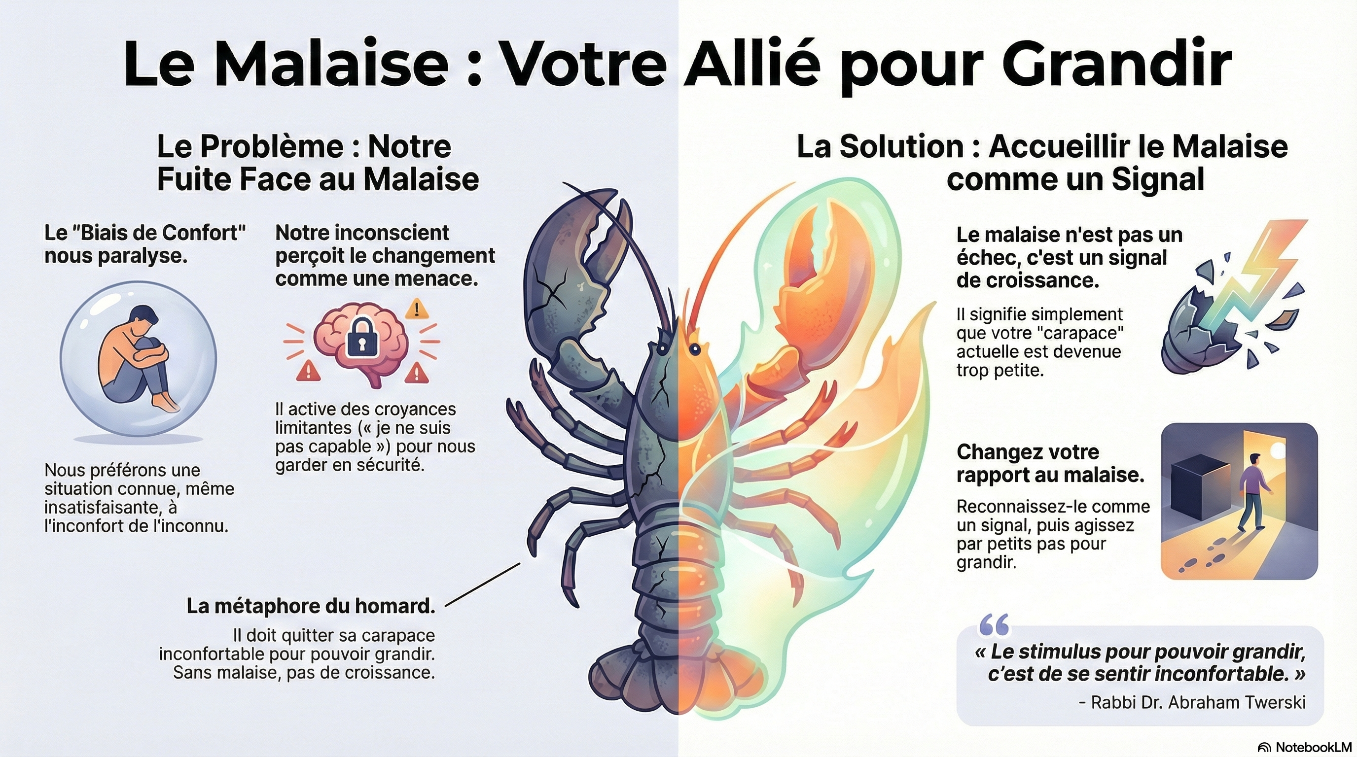 « Ce malaise n’est pas une erreur. C’est un signal. Ma carapace actuelle est trop petite. Je vais grandir. »